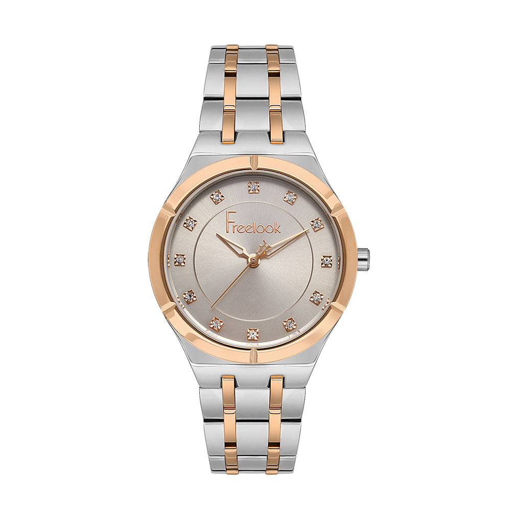 Colectia Jolie de la Freelook este conceputa pentru a captura esenta elegantei discrete a Parisului. Cu un cadran argintiu impecabil si decorat cu cristale stralucitoare, acest ceas este definitia luxului accesibil. Carcasa din alama si bratara din otel inoxidabil subliniaza durabilitatea si finetea designului.