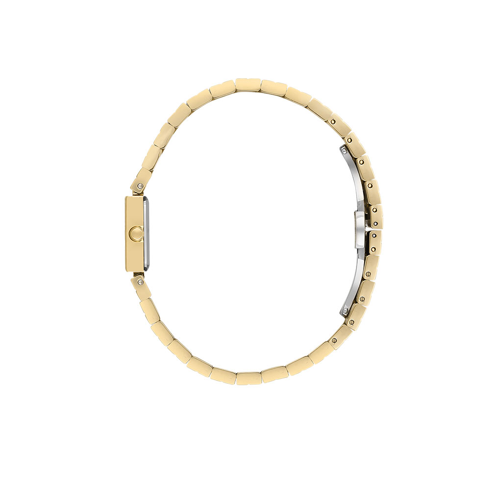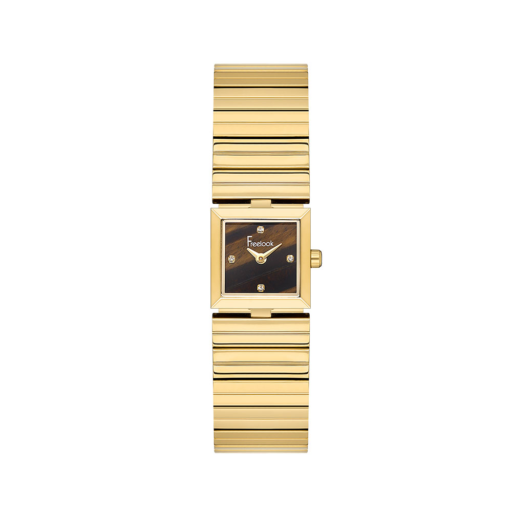 Realizat cu un mecanism de provenienta japoneza, ceasul Freelook Jolie garanteaza o precizie remarcabila, avand o abatere de doar ±20 de secunde pe luna. Cadranul sidef iluminat discret de cristale si carcasa patrata din otel inoxidabil colorat in auriu adauga o nota de lux si distinctie.