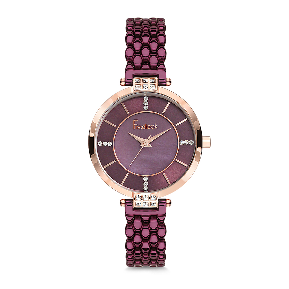 Dotat cu un mecanism quartz japonez, ceasul promite o abatere minima de ±20 secunde pe luna, garantand precizie si fiabilitate. Cadranul mov sidefat, impreuna cu carcasa rotunda de 31 mm din otel inoxidabil cu finisaj auriu rose, confera un look sofisticat si modern.