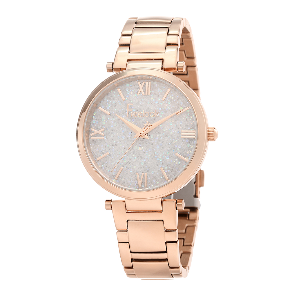 Fabricat cu un mecanism quartz de provenienta japoneza, ceasul Freelook Lumiere ofera precizie si durabilitate, avand o abatere de doar ±20 secunde pe luna. Carcasa din otel inoxidabil in culoarea aurului rose si bratara pe ton asigura un look sofisticat si versatil.
