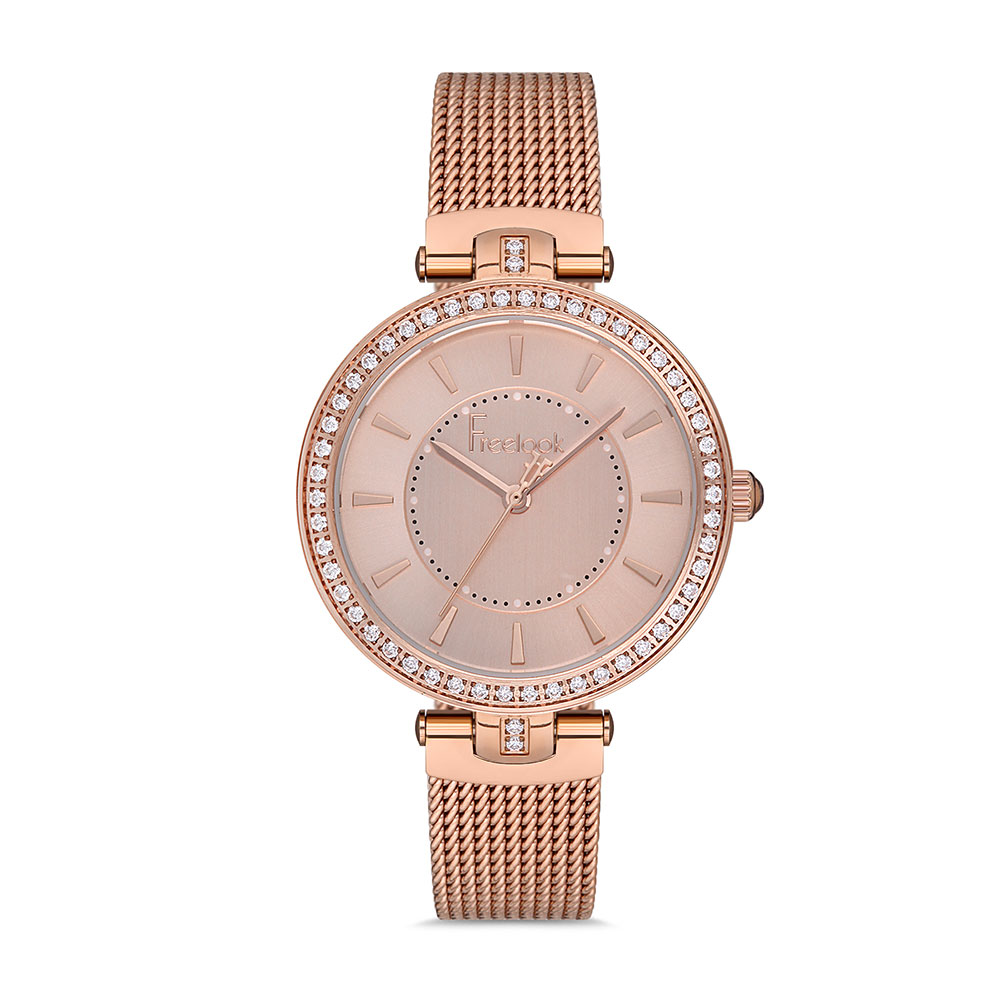 Dotat cu un mecanism Quartz de provenienta japoneza, ceasul promite o abatere minima de ±20 secunde pe luna, asigurand precizie si fiabilitate. Cadranul auriu rose, impreuna cu carcasa din alama si bratara din otel inoxidabil, sunt accentuate de cristale stralucitoare care adauga o nota de rafinament.