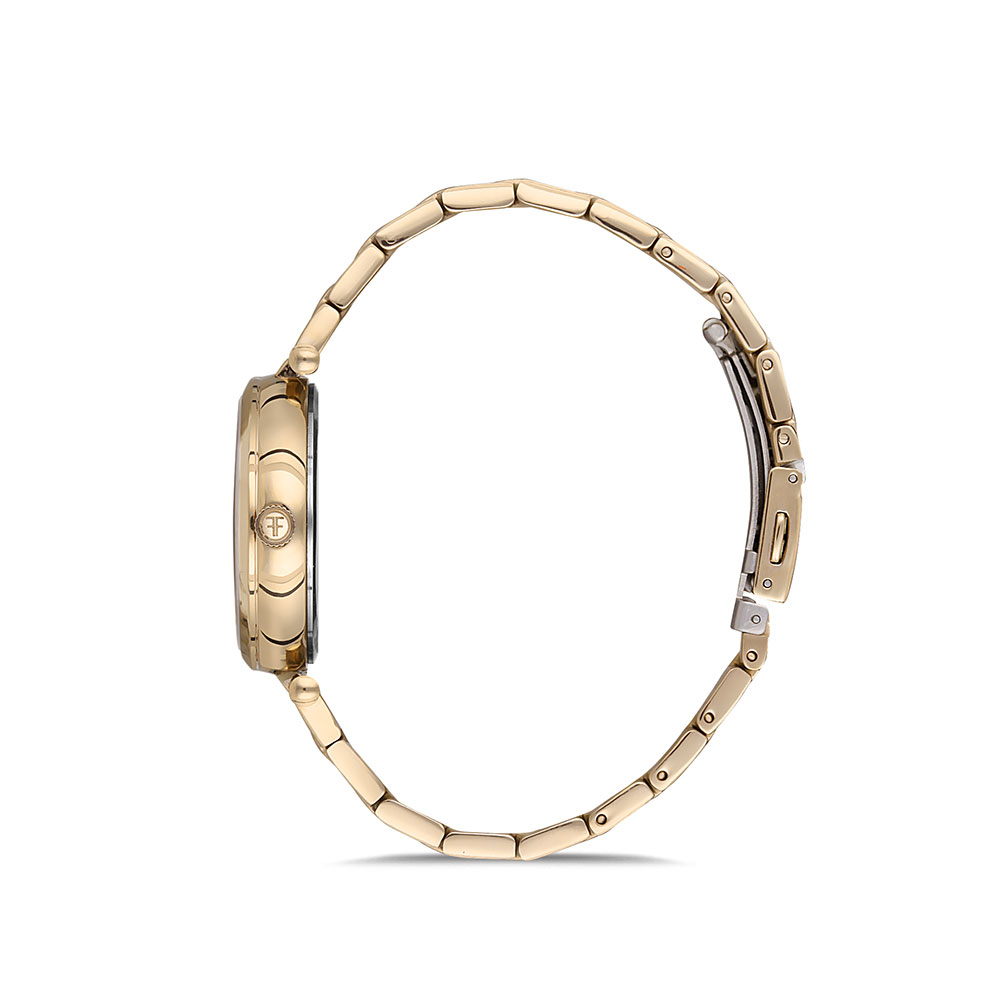Aspectul luxos este completat de carcasa rotunda aurie si de bratara din otel inoxidabil, ambele in culoarea aurie, care ofera un contrast splendid cu cadranul argintiu. Geamul din cristal mineral adauga o nota de durabilitate si claritate, protejand ceasul impotriva zgarieturilor si uzurii cotidiene.