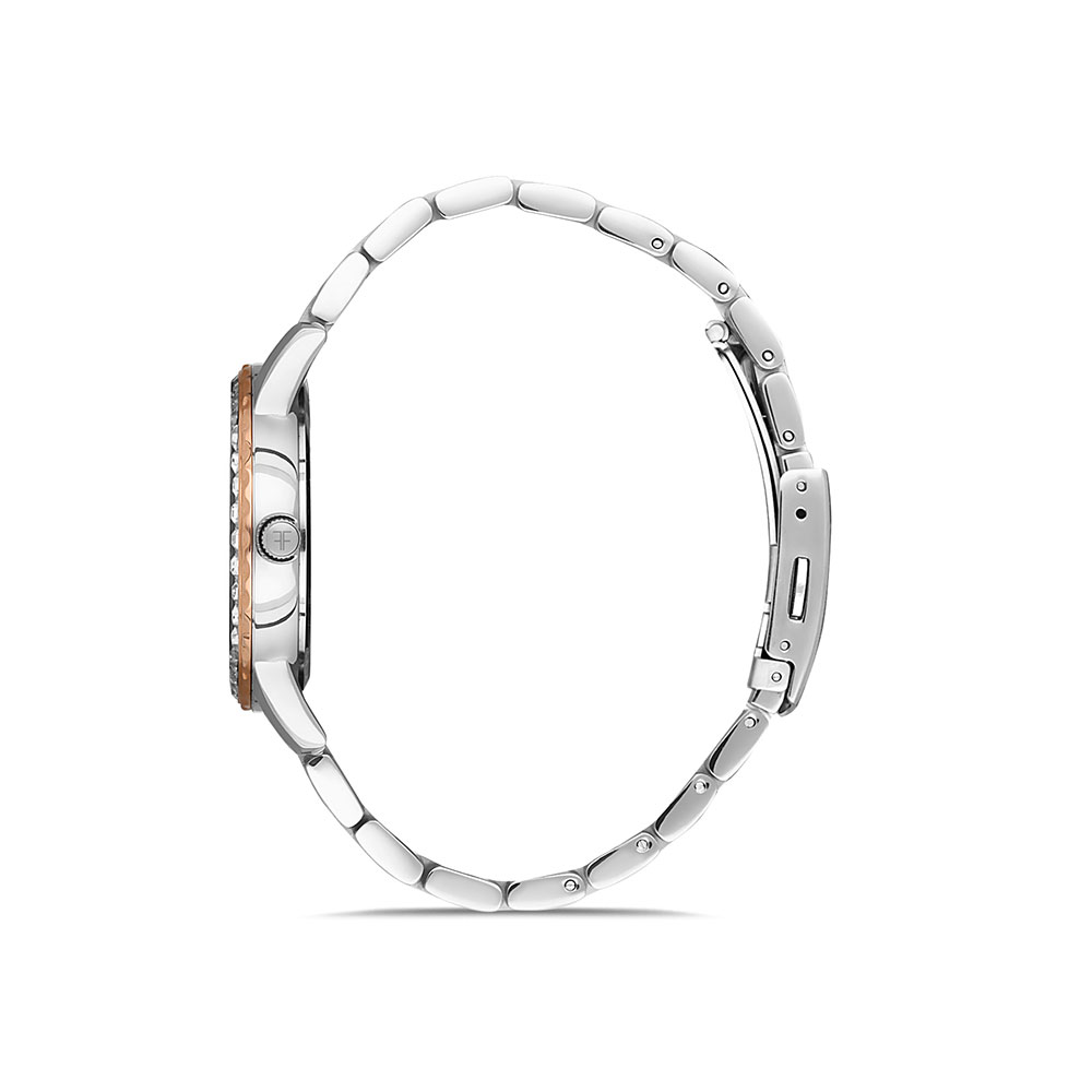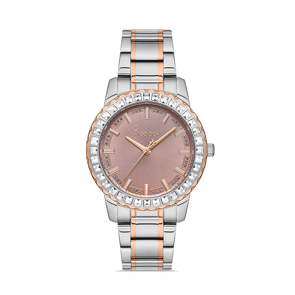 Designul sofisticat este accentuat de cristalele ce inconjoara cadranul, adaugand un plus de stralucire. Rezistenta la apa de pana la 5 atm asigura protectie si in conditii de umiditate, facand din ceasul Freelook Lumiere alegerea ideala pentru fiecare sezon.