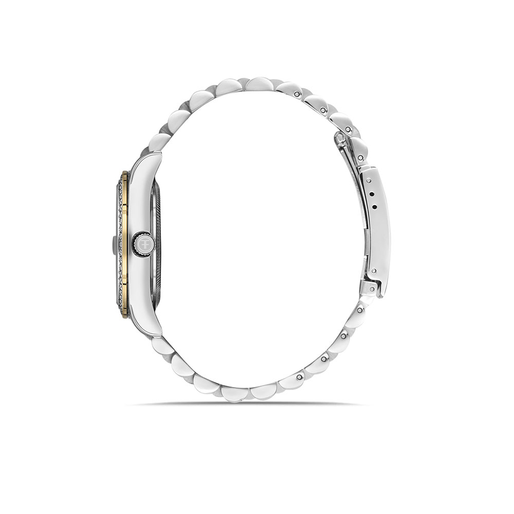 Bratara din otel inoxidabil, cu nuante bicolor, adauga un plus de stil, fiind usor de asortat cu diverse tinute, de la cele casual la cele formale. Sistemul de inchidere tip fluture este nu doar practic, ci si sigur, asigurand o fixare perfecta pe incheietura.