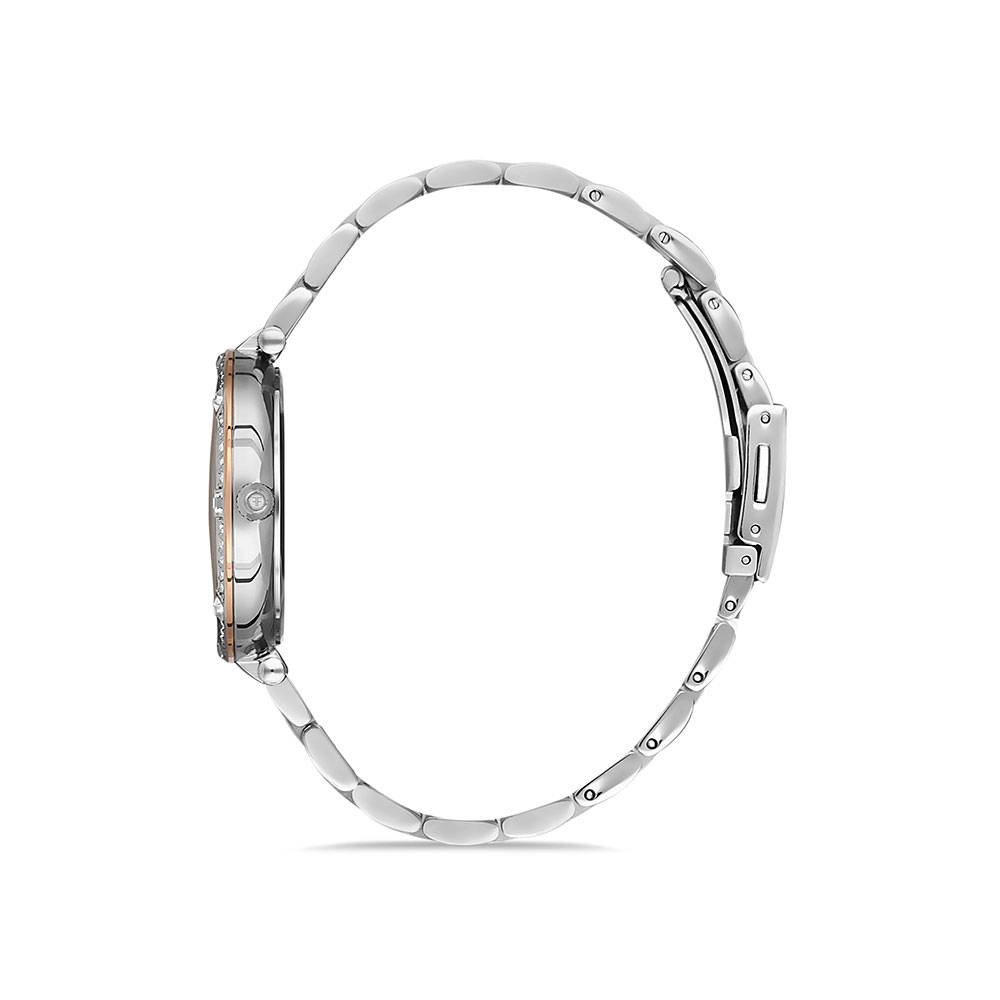 Bratara din otel inoxidabil bicolor si sistemul de inchidere tip fluture ofera confort si securitate, facand din Ceasul Freelook Lumiere alegerea perfecta pentru orice ocazie, de la intalniri de afaceri la evenimente sociale. Rezistenta la apa de pana la 5 atm asigura durabilitate si protectie in orice conditii.