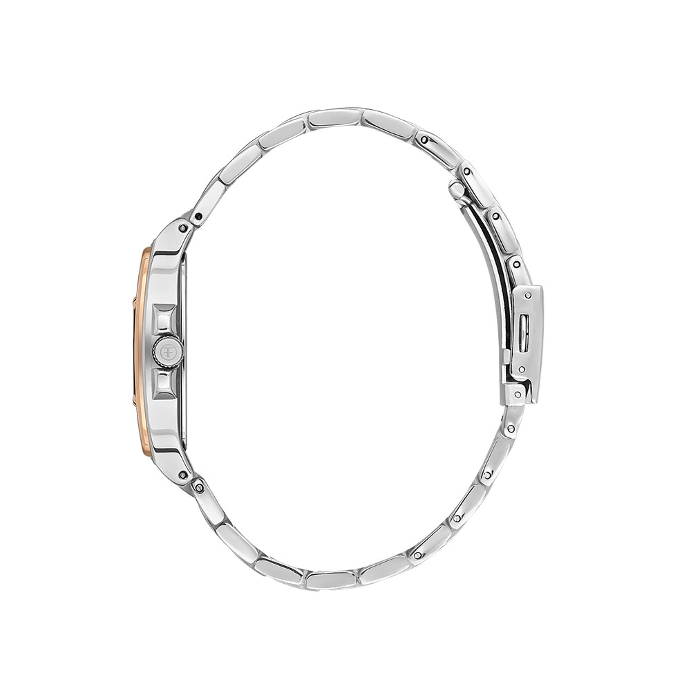 Cu un mecanism quartz japonez Miyota 2035, ceasul promite o abatere minima de timp (± 20 secunde pe luna), asigurand precizie si durabilitate. Afisajul analogic, protejat de un cristal mineral rezistent la zgarieturi, se distinge prin eleganta sa simpla, iar carcasa ovala din alama argintie, impreuna cu bratara din otel inoxidabil bicolore, adauga un plus de rafinament.