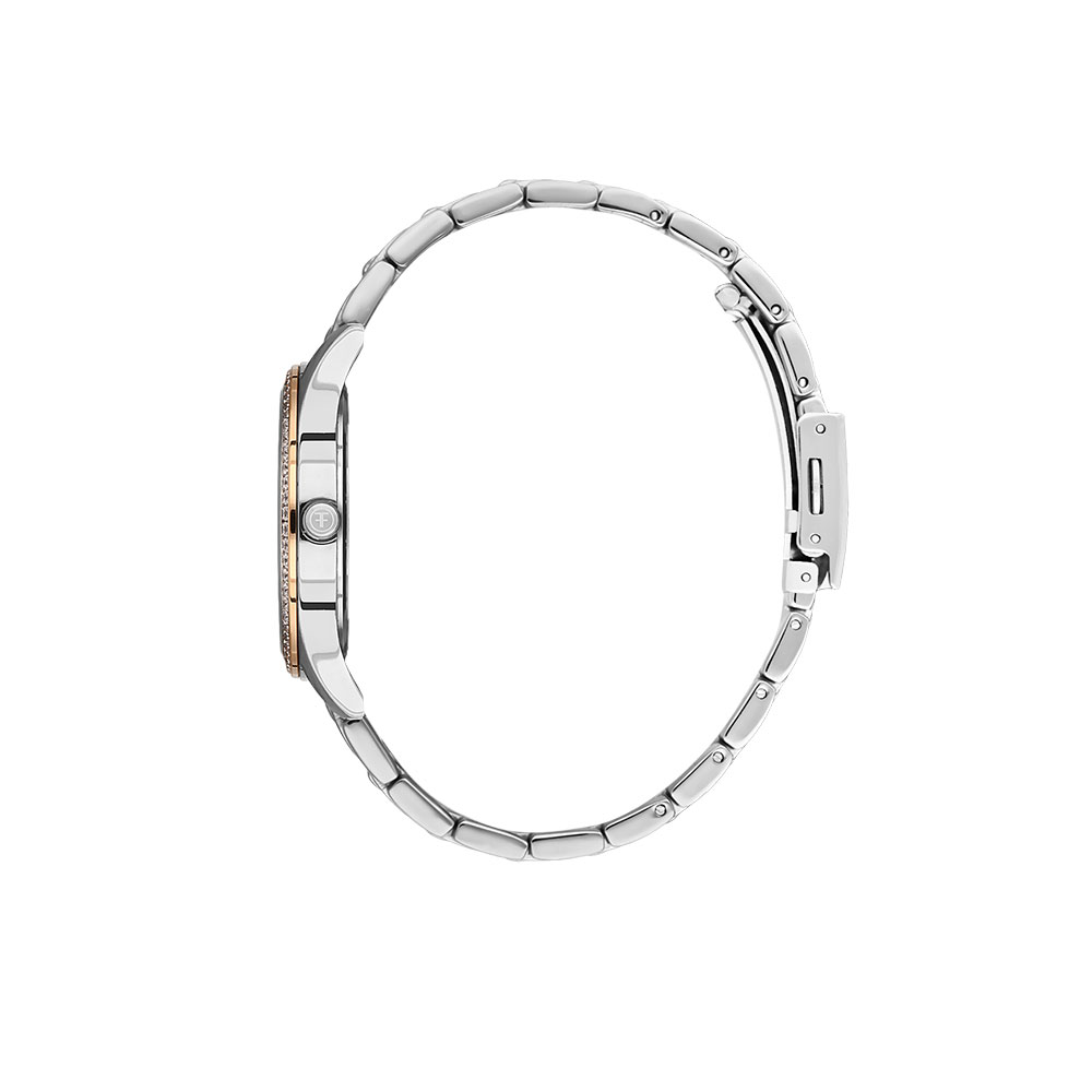 Dotat cu un afisaj analogic si un cadran argintiu, incadrat de cristale si o carcasa din otel inoxidabil, acest accesoriu este nu doar util, dar si un adevarat statement de stil. Rezistenta la apa de 5 atm il face ideal pentru utilizare zilnica, indiferent de conditiile meteo.