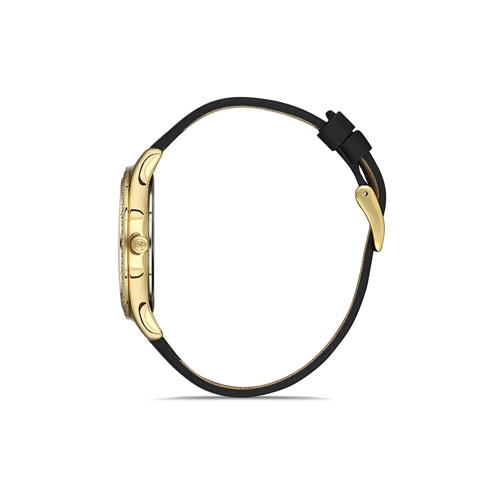 Dotat cu un mecanism quartz japonez de inalta precizie, cu o abatere de ±20 secunde pe luna, si rezistenta la apa de 5 atm, ceasul Freelook Lumiere este perfect pentru viata activa a femeilor care nu vor sa faca compromisuri in privinta stilului. Cadranul negru elegant este accentuat de carcasa aurie si cristalele stralucitoare, oferind un contrast impresionant si un aspect luxos.