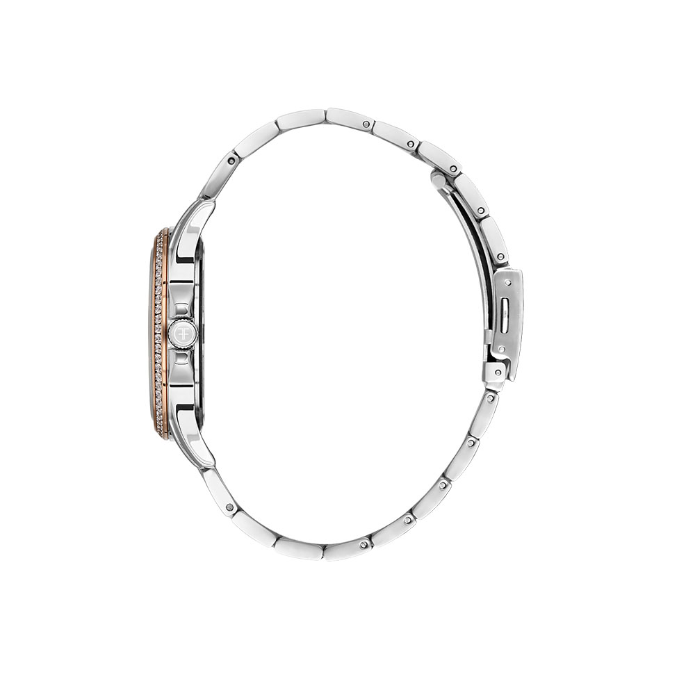 - Designul sofisticat cu cadran auriu rose si detalii argintii