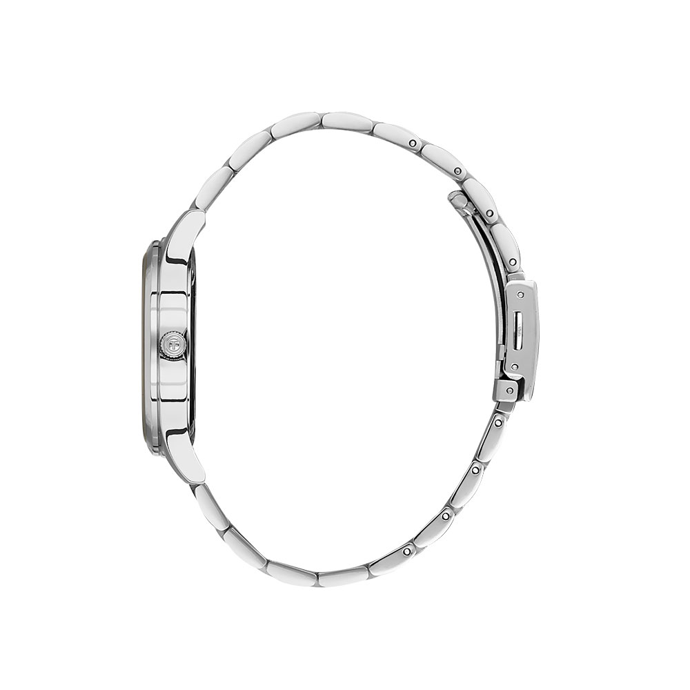 Detaliile precum geamul din cristal mineral si rezistenta la apa de 5 atm sunt gandite pentru a asigura durabilitatea si rezistenta ceasului in fata provocarilor cotidiene. Designul minimalist, impreuna cu sistemul de inchidere tip fluture, completeaza perfect profilul elegant al acestui ceas.