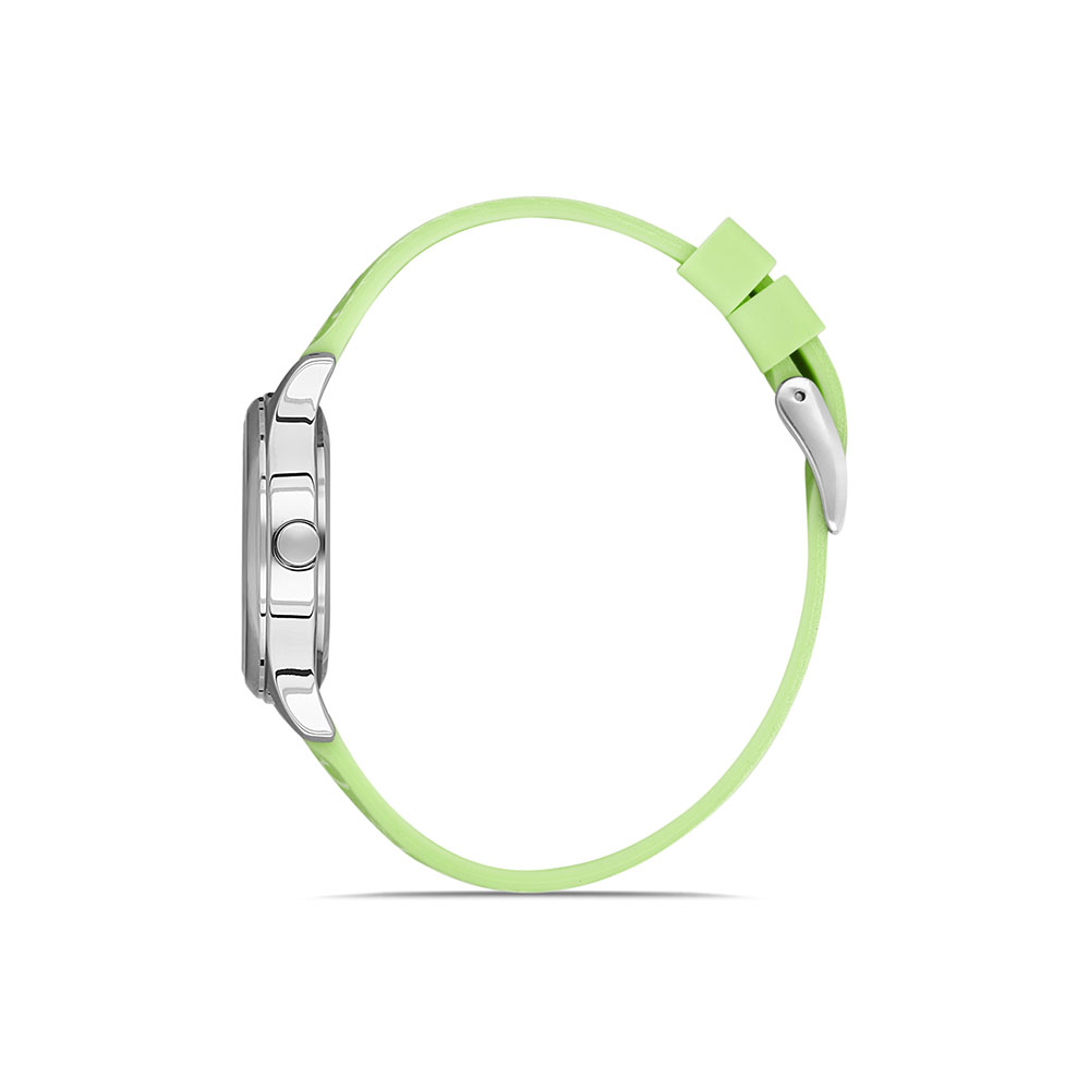 Cu o curea din silicon moale si rezistent, decorata cu ilustratii colorate reprezentand animale simpatice precum leul, maimuta si rinocerul, ceasul atrage imediat atentia si stimuleaza creativitatea copilului. Cureaua are nuante dominante de verde, portocaliu, maro si albastru, perfect armonizate cu un cadran alb decorat cu cifre mari si usor de citit.