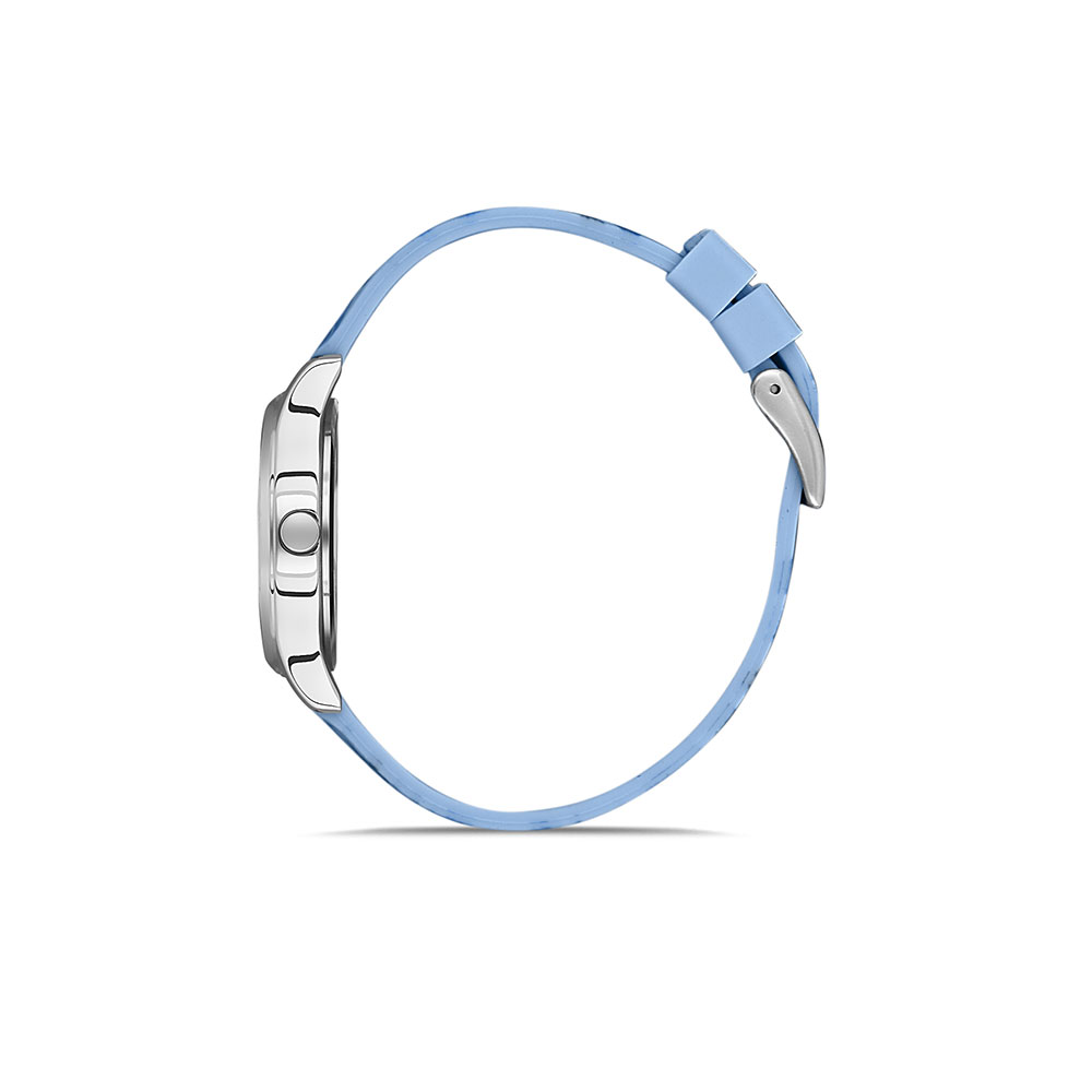 Cureaua din silicon moale, lunga de 180 mm si lata de 14 mm, este confortabila si sigura pentru incheietura copiilor. Designul jucaus, in nuante de albastru si accente portocalii, face din acest ceas un accesoriu adorat de cei mici.