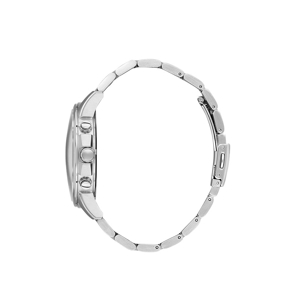 Cu o carcasa rotunda din otel inoxidabil argintiu de 46 mm si un cadran negru contrastant, ceasul ofera un aspect robust si masculin. Bratara, realizata tot din otel inoxidabil argintiu, completeaza perfect designul unitar si elegant, fiind prevazuta cu sistem de inchidere tip fluture pentru confort si siguranta sporita.