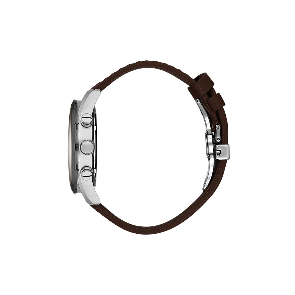 Cureaua din piele maro confera un plus de confort si durabilitate, fiind potrivita atat pentru tinutele casual, cat si pentru cele business. Sistemul de inchidere cu catarama asigura o fixare sigura pe incheietura.