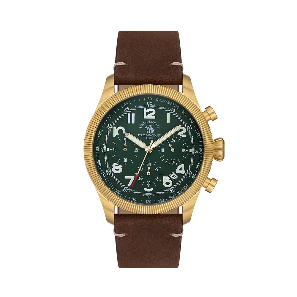 Ceasul de mana Santa Barbara Polo Legend SB.8.10008.5 imbina eleganta sportiva cu functionalitatea moderna, fiind alegerea ideala pentru barbatii activi si pasionati de stil. Designul sau masculin si impunator este definit de o carcasa rotunda din otel inoxidabil auriu, completata armonios de un cadran verde inchis si o curea din piele naturala cafenie.