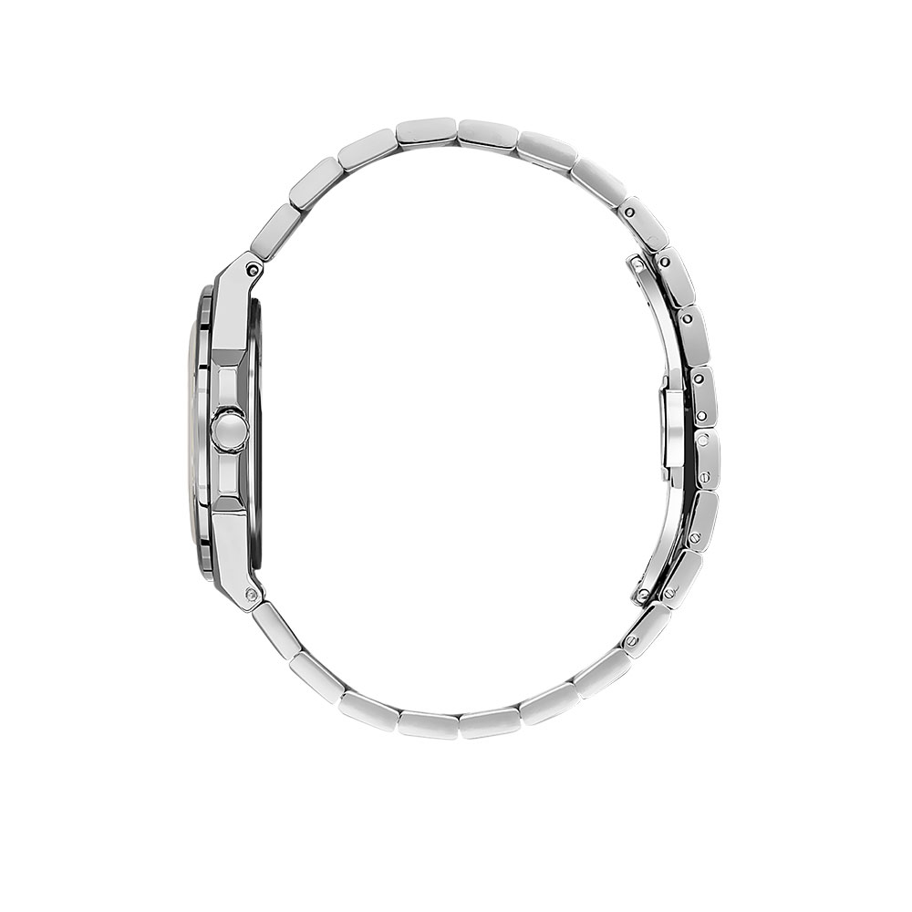 Bratara din otel inoxidabil argintiu este proiectata pentru confort si durabilitate, avand un sistem de inchidere fluture care garanteaza o fixare sigura si usoara. In interior, mecanismul quartz japonez de inalta precizie asigura o functionare fara abateri semnificative, fiind un partener de incredere in fiecare zi.