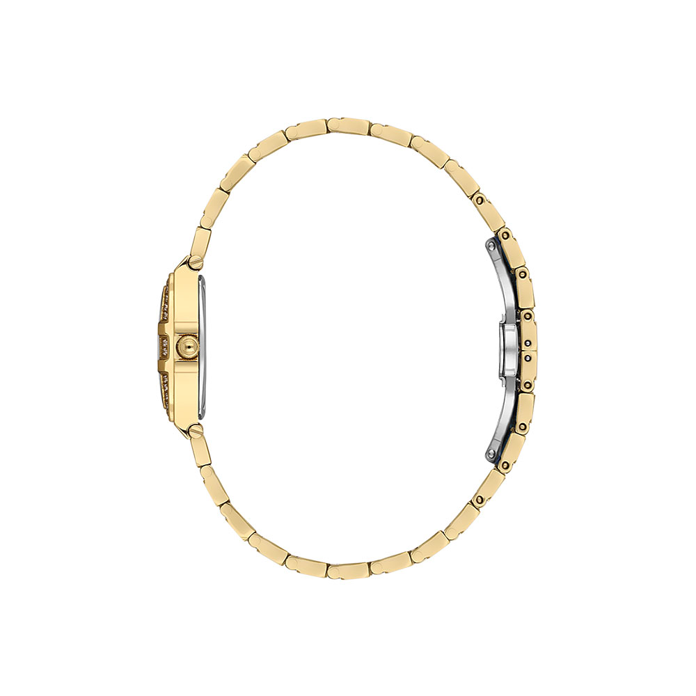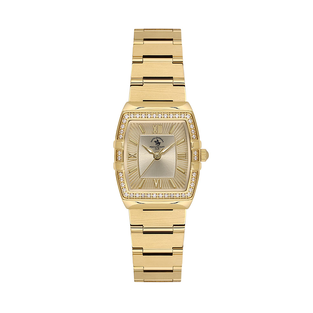 Cu o carcasa dreptunghiulara de 29x24 mm din otel inoxidabil si o bratara aurie eleganta, acest ceas devine un adevarat simbol al rafinamentului. Rezistenta la apa de 5 ATM il face potrivit pentru activitatile zilnice, in timp ce sistemul de inchidere fluture ofera siguranta si confort.