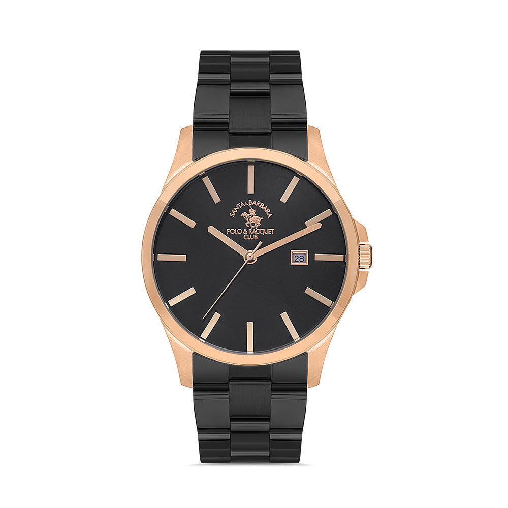 Ceasul negru cu detalii aurii rose, este un model elegant si delicat, pentru barbatii atenti la detalii. Bratara ceasului este in doua nuante de negru, mat si lucios, iar carcasa este auriu rose, la fel fiind si detaliile din interiorul cadranului. Data este afisata in dreptul orei 3.Ceasurile Santa Barbara Polo&Racquet Club continua traditia celui mai vechi si prestigios club de polo din SUA. Combinand cu succes un design elegant si materiale de calitate, ceasurile barbatesti Santa Barbara Polo&Racquet Club sunt un accesoriu care va completa cu succes o tinuta office sau casual.Fotografiile produselor au rol de prezentare. Intre imaginile afisate pe site si produsele achizitionate pot aparea mici diferente de culori.