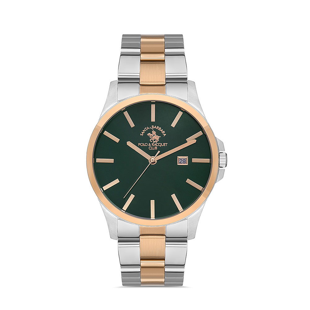 Ceasul pentru barbati Santa Barbara Polo- Noble, este un model deosebit si elegant. Bratara este din otel inoxidabil, in doua culori: argintiu si auriu rose, iar cadranul este verde, adaugand astfel o pata de culoare. Un model deosebit pentru orice pasionat de ceasuri si accesorii.Ceasurile Santa Barbara Polo&Racquet Club continua traditia celui mai vechi si prestigios club de polo din SUA. Combinand cu succes un design elegant si materiale de calitate, ceasurile barbatesti Santa Barbara Polo&Racquet Club sunt un accesoriu care va completa cu succes o tinuta office sau casual.Fotografiile produselor au rol de prezentare. Intre imaginile afisate pe site si produsele achizitionate pot aparea mici diferente de culori.