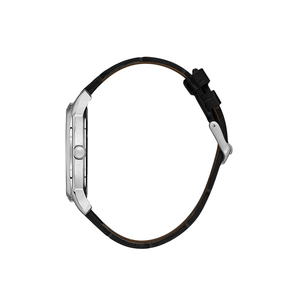 Carcasa din otel inoxidabil argintiu cu diametrul de 42 mm confera un aspect robust, dar elegant, completat perfect de cadranul argintiu cu afisaj analogic. Geamul din cristal mineral protejeaza mecanismul impotriva zgarieturilor, oferind in acelasi timp o vizibilitate clara.