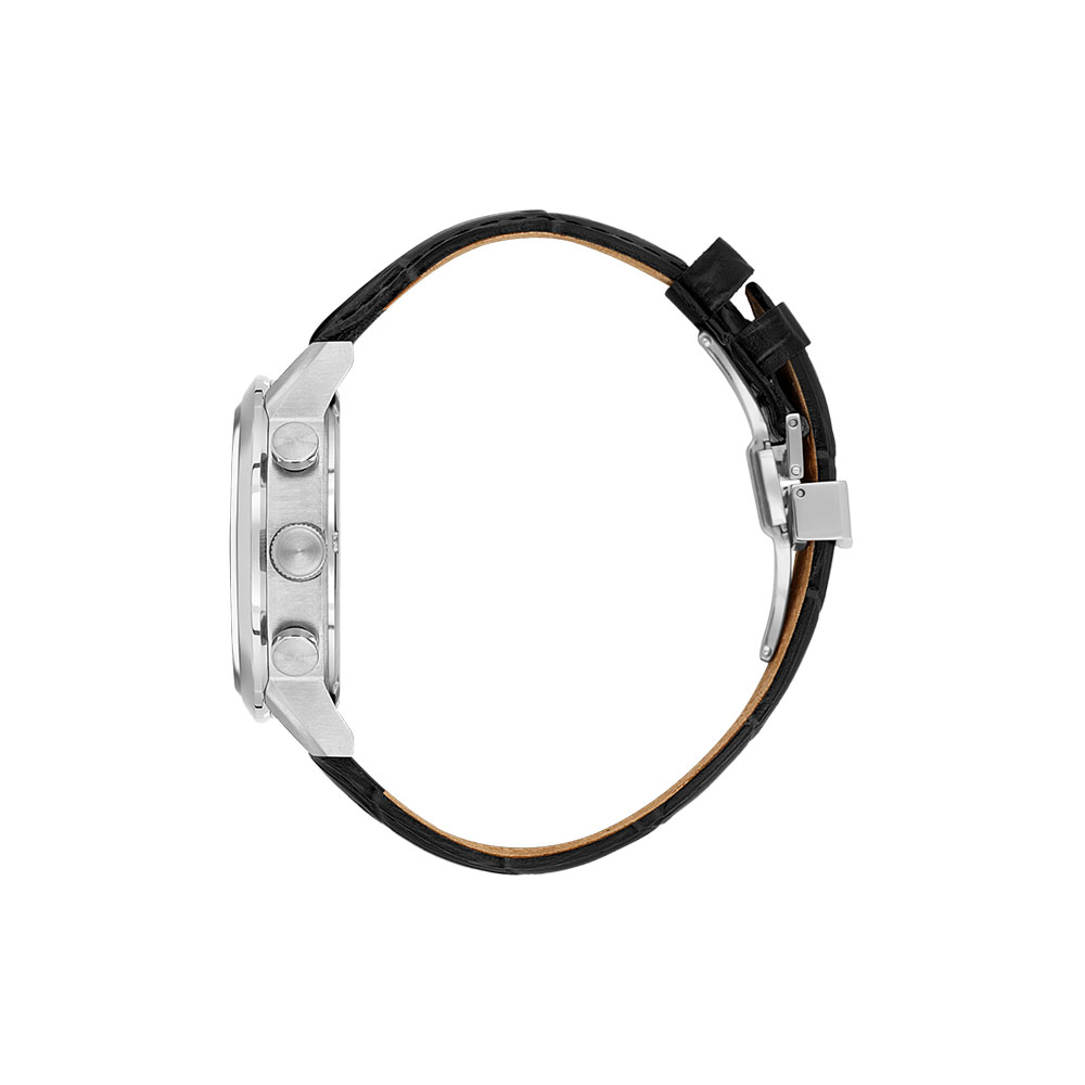 Cu un mecanism Quartz japonez, ceasul asigura o precizie de +/- 20 secunde pe luna, fiind perfect pentru cei care doresc un accesoriu de incredere. Afisajul analogic, combinat cu un cadran negru elegant, aduce un plus de rafinament, in timp ce carcasa din otel inoxidabil argintiu si cureaua din piele neagra completeaza perfect designul.