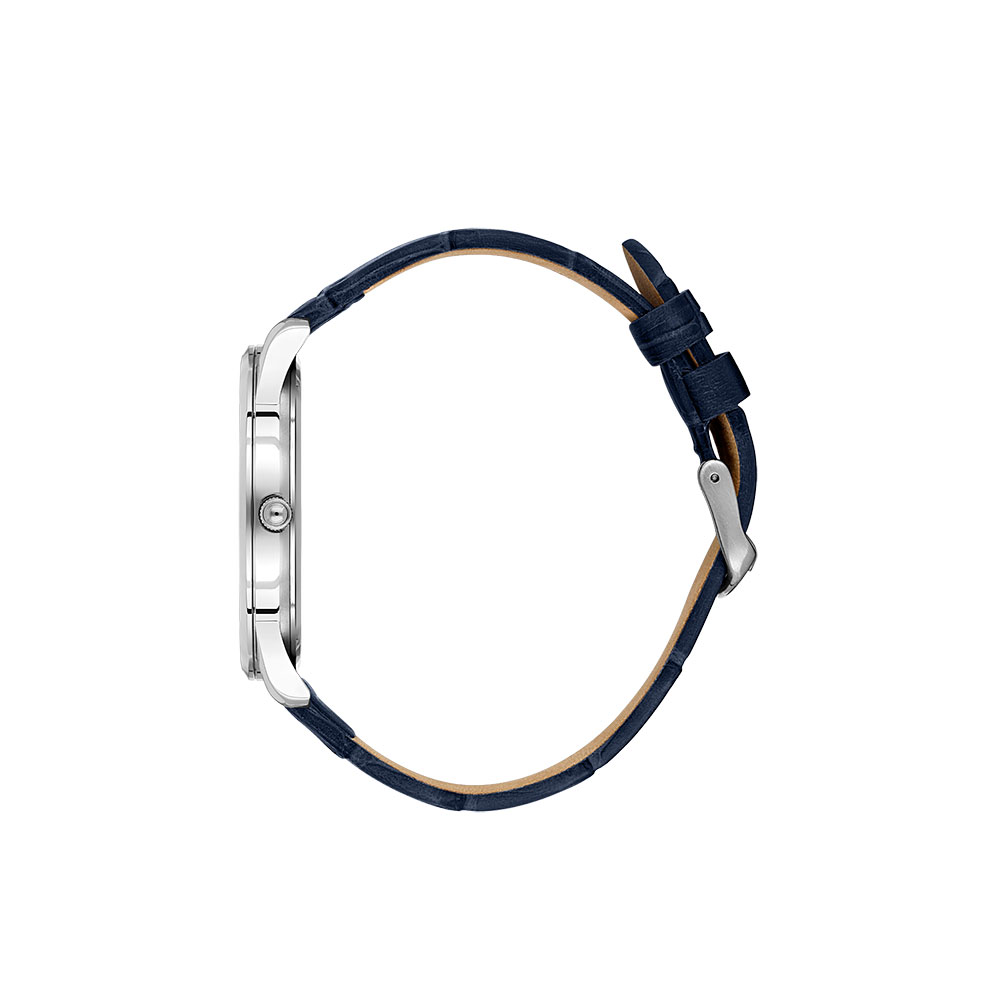 - Bratara din piele bleumarin de 21 mm, cu textura eleganta si sistem de inchidere cu catarama