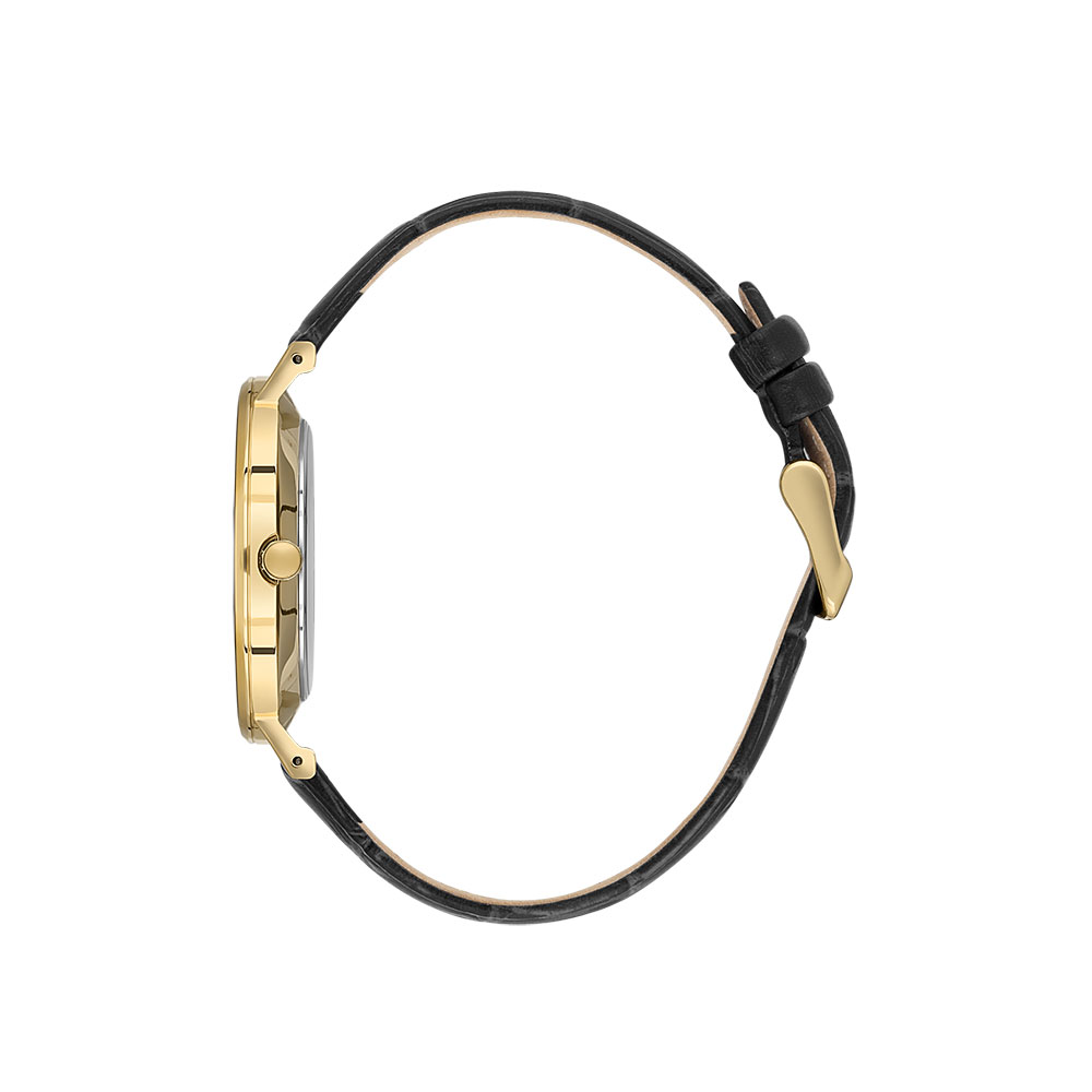 Cureaua din piele neagra adauga un plus de confort si stil, fiind prevazuta cu un sistem de inchidere cu catarama, perfect pentru purtarea zilnica. Cu o rezistenta la apa de 5 ATM, acest ceas este pregatit sa faca fata provocarilor cotidiene.