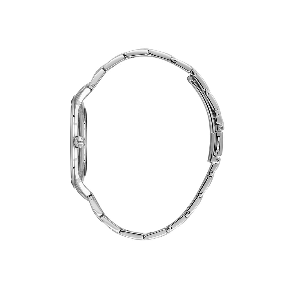 Carcasa rotunda din otel inoxidabil argintiu cu diametrul de 41 mm si grosimea de doar 7 mm ofera un profil subtire si rafinat. Cadranul de un verde intens creeaza un contrast vizual placut si adauga o nota distinctiva tinutei. Geamul din cristal safir asigura rezistenta sporita la zgarieturi, mentinand claritatea impecabila in timp.