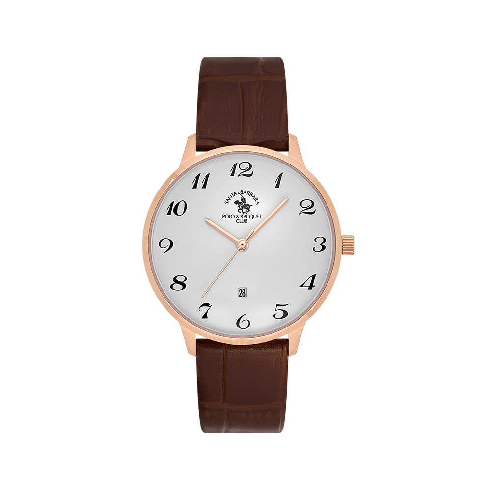 Carcasa rotunda din otel inoxidabil, cu o culoare auriu rose, adauga o nota de lux, in timp ce cureaua din piele cafenie, cu lungimea de 190 mm, asigura un confort sporit la purtare. Sistemul de inchidere cu catarama este practic si sigur, facand acest ceas potrivit pentru orice ocazie.