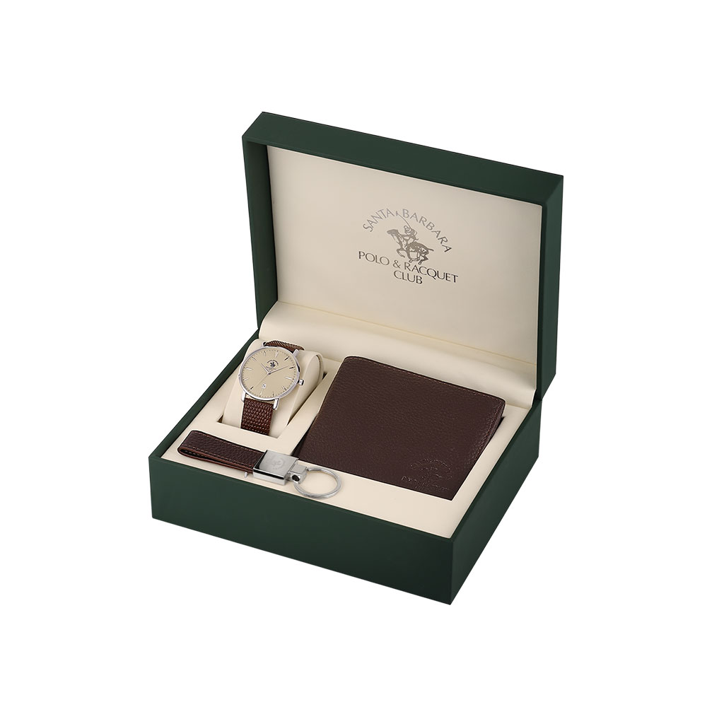 Setul vine ambalat intr-o cutie eleganta si include un portofel si un breloc asortat, facandu-l o alegere ideala pentru un cadou deosebit sau un plus stilat in colectia personala. Ceasul Santa Barbara Polo este mai mult decat un instrument de masurare a timpului – este o declaratie de stil si rafinament masculin.