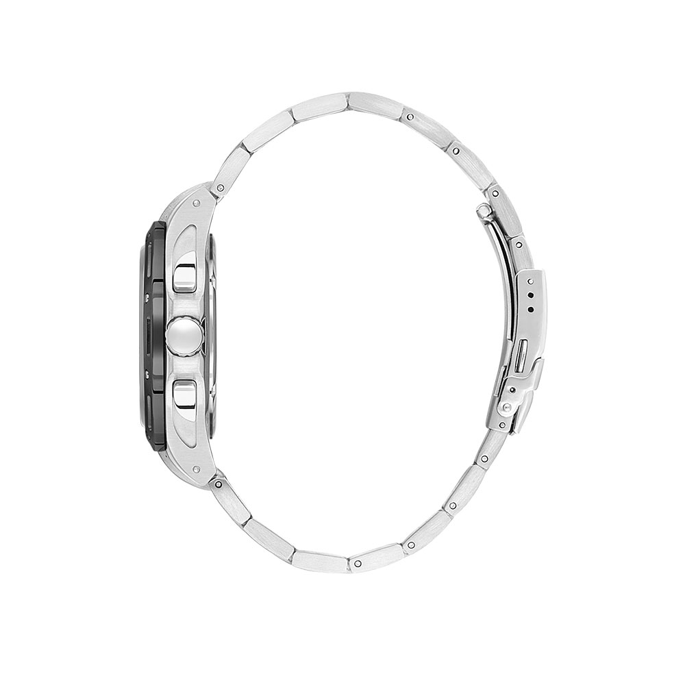 Bratara argintie din otel inoxidabil, cu latimea de 24 mm si lungimea de 210 mm, ofera confort si siguranta prin sistemul de inchidere tip fluture, fiind potrivita atat pentru tinute casual cat si pentru ocazii speciale. Rezistenta la apa pana la 5 ATM il face ideal pentru utilizarea zilnica, rezistand stropilor accidentali si ploilor usoare.