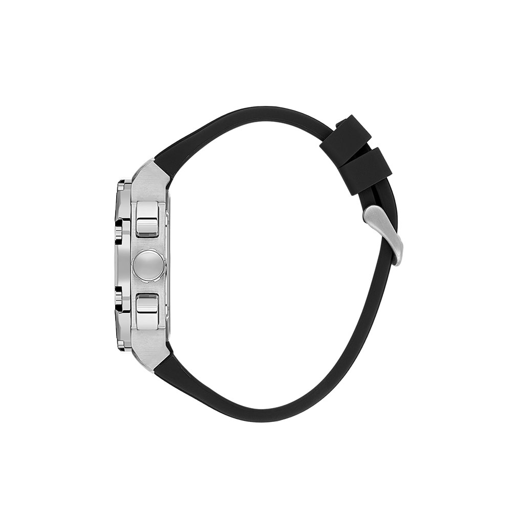 Designul sau impresionant este completat de un cadran negru elegant si o carcasa rotunda din otel inoxidabil, ce confera durabilitate si un aspect modern. Curea din silicon negru de 210 mm asigura confortul si stilul necesar, fiind ideala pentru orice tinuta.