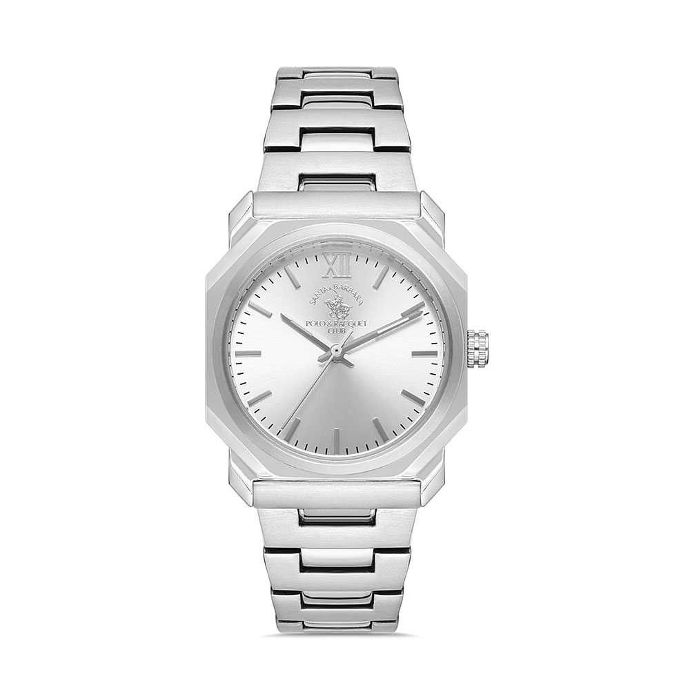 Carcasa octogonala, realizata din otel inoxidabil, are un finisaj argintiu ce confera un aspect luxos si durabilitate sporita. Cadranul argintiu, protejat de un geam din cristal mineral, ofera o vizibilitate clara, iar marcajele minimaliste subliniaza eleganta acestui model.
