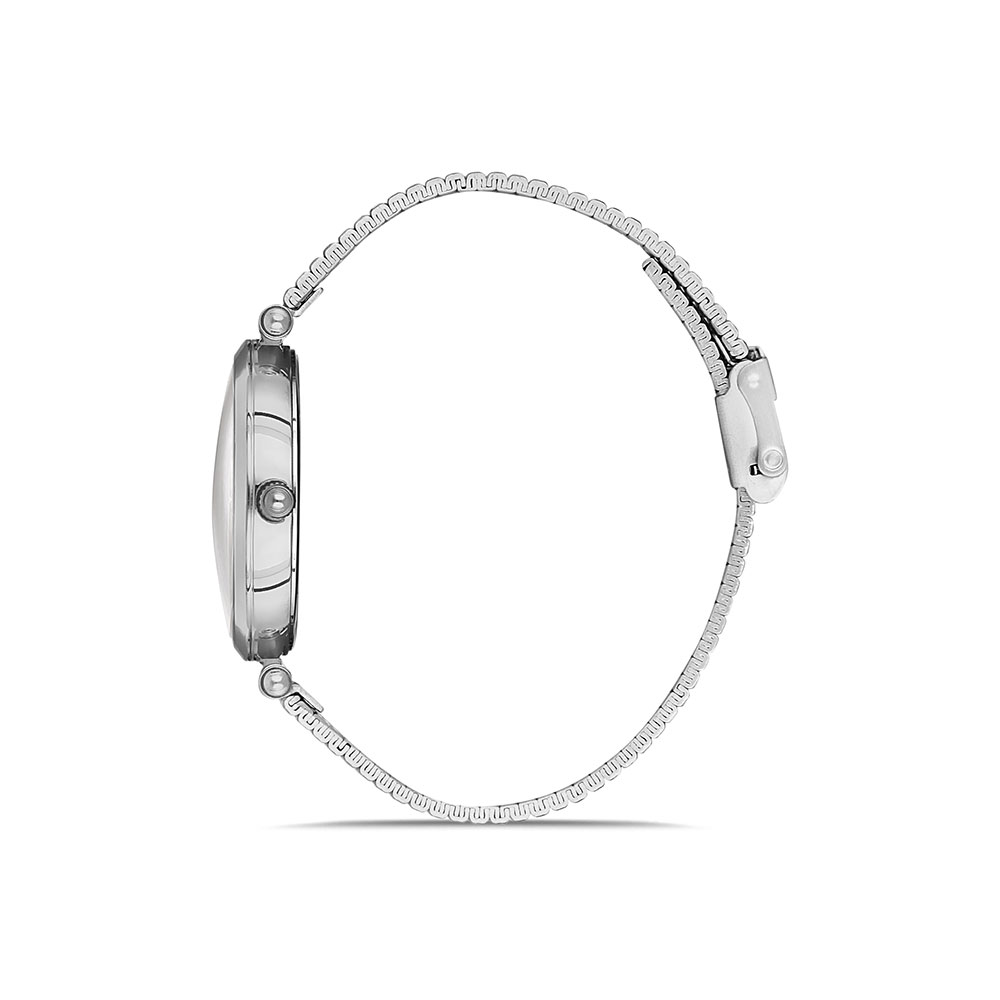 Cadran alb sidefat; indicatoare luminoase; bratara tip zale, cu inchizatoare reglabila.