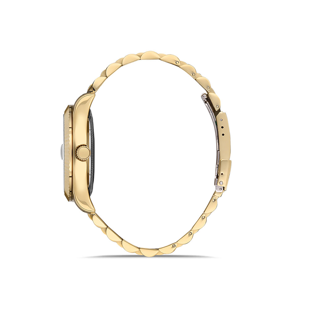 Indicatoare luminoase; geam cu lupa in dreptul datei; bratara tip zale, in doua tonuri, argintiu mat si lucios, cu inchizatoare tip fluture; afiseaza data curenta.