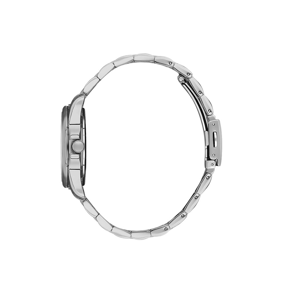 Bratara din otel inoxidabil argintiu adauga un plus de durabilitate si eleganta, avand un sistem de inchidere fluture pentru siguranta si confort pe incheietura. Ceasul este echipat cu un mecanism Quartz japonez Epson Vx32e11, garantand o precizie de ±20 secunde pe luna.