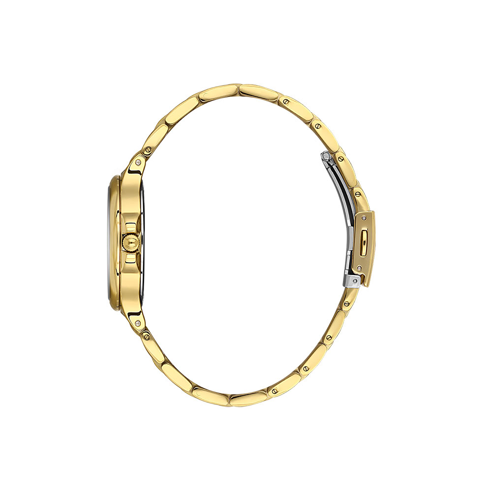 - Bratara aurie din otel inoxidabil cu sistem de inchidere tip fluture, asigurand o fixare sigura si confortabila.