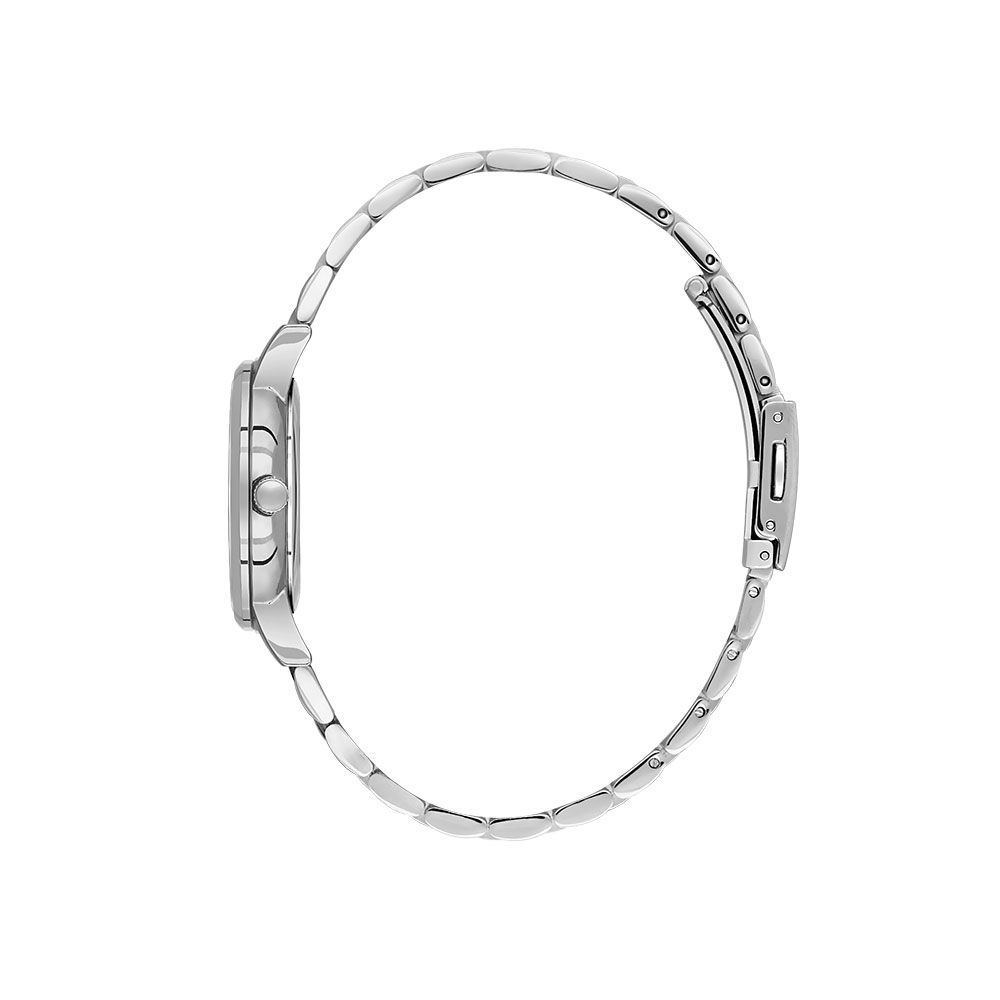 Carcasa rotunda din otel inoxidabil, cu dimensiuni de 31 mm in lungime si latime si o grosime de 8 mm, ofera durabilitate si un aspect modern. Bratara din otel inoxidabil, de culoare argintie, completeaza perfect designul, asigurand un confort sporit datorita sistemului de inchidere tip fluture.