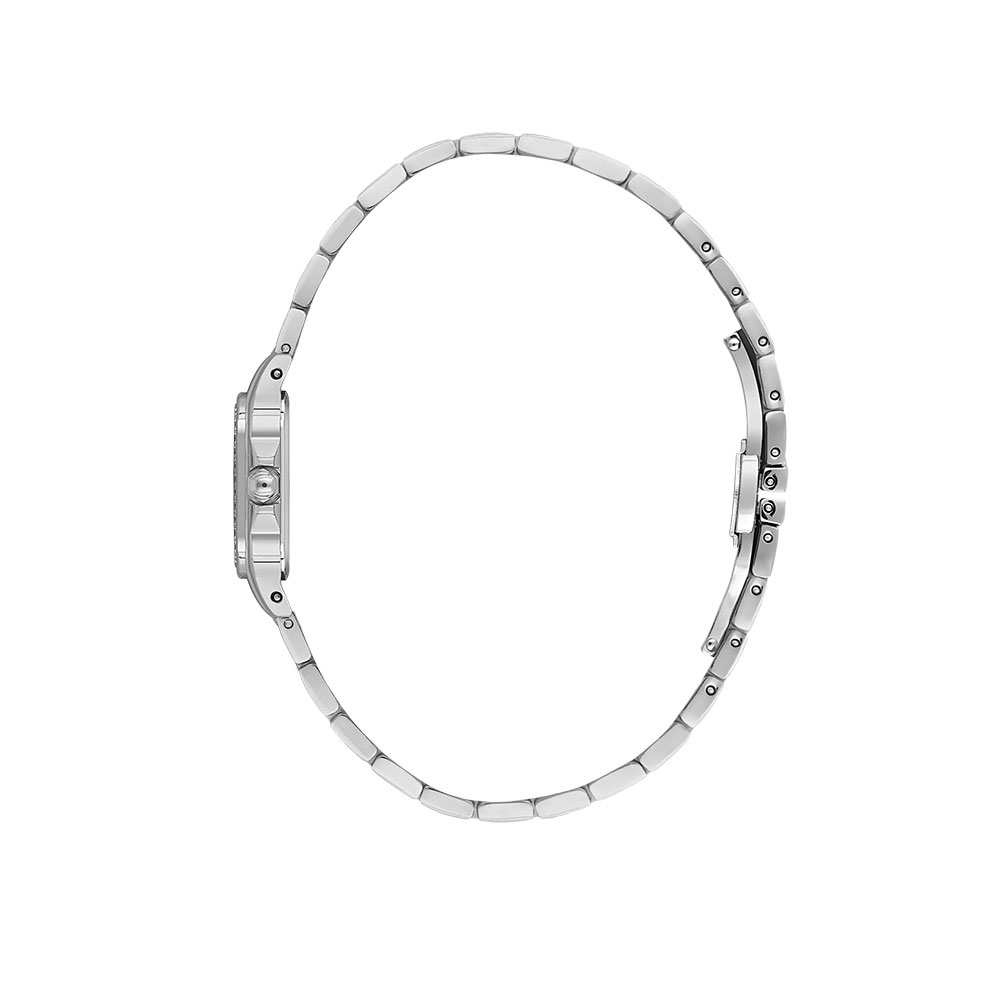 Ceasul dispune de un mecanism quartz japonez de inalta precizie, cu o abatere de doar ±20 secunde pe luna, asigurand o acuratete de neegalat. Afisajul analogic se evidentiaza prin cadranul argintiu, protejat de un cristal mineral rezistent, iar carcasa patrata din otel inoxidabil adauga un plus de eleganta si durabilitate.