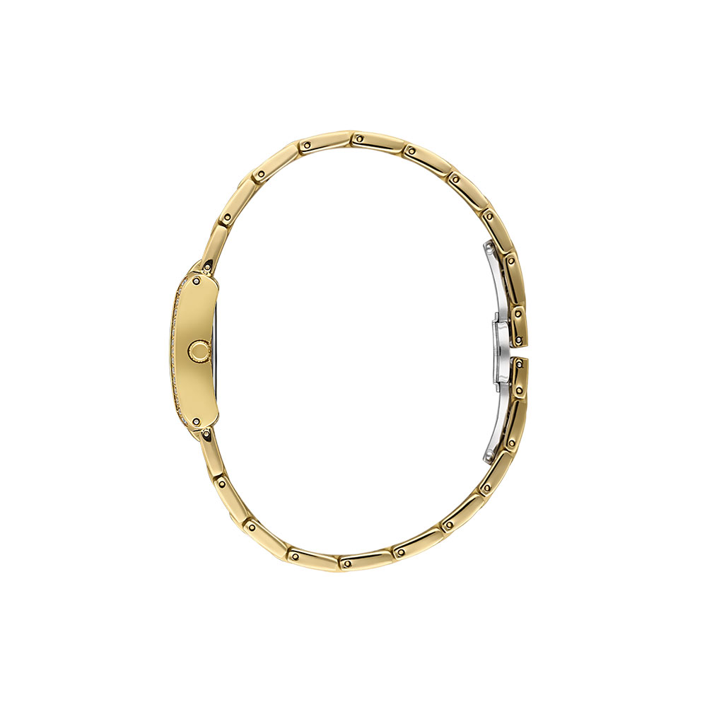 Ceasul de dama Santa Barbara Polo Unique SB.1.10611.3 imbina eleganta clasica cu rafinamentul modern, fiind alegerea ideala pentru femeile care apreciaza detaliile fine si stilul sofisticat. Acest model fashion impresioneaza prin designul dreptunghiular al carcasei si finisajul auriu lucios, completat de cristalele decorative care incadreaza delicat cadranul, adaugand un plus de stralucire.