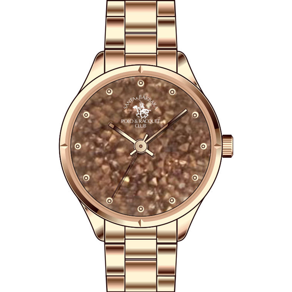 Unul dintre elementele distinctive ale acestui model este cadranul spectaculos, decorat cu un finisaj texturat in tonuri calde, care reflecta lumina intr-un mod subtil si elegant. Marcajele orare minimaliste si logo-ul distinctiv Santa Barbara Polo & Racquet Club adauga un plus de rafinament.