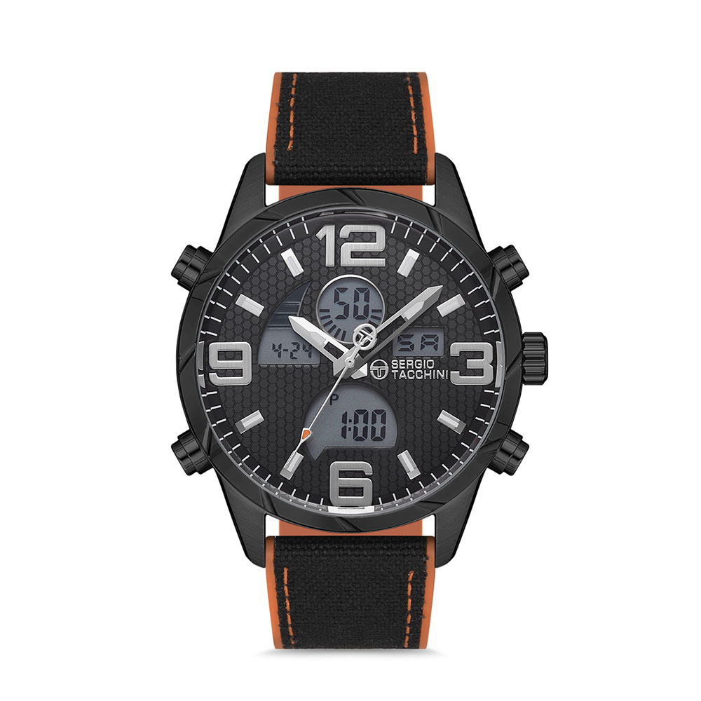 Cu o carcasa rotunda din otel inoxidabil de culoare neagra si un cadran texturat, ceasul ofera un aspect masculin si impunator. Afisajul sau digital si analogic asigura o citire facila a timpului, in timp ce functiile suplimentare precum iluminarea cadranului, cronometru, alarma si afisarea datei aduc un plus de utilitate in viata de zi cu zi.