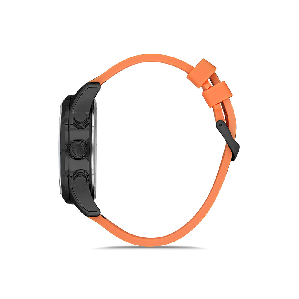 Confortul este asigurat de o curea din silicon negru, cu accente portocalii si cusaturi contrastante, care adauga un plus de dinamism si stil. Sistemul de inchidere tip catarama ofera siguranta si o fixare optima pe incheietura.