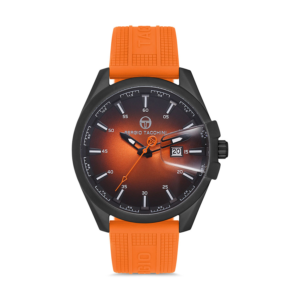 Exprima-ti stilul sportiv si rafinamentul cu ceasul Sergio Tacchini Archivio ST.1.10115.4, un accesoriu creat pentru barbatii care apreciaza precizia si designul modern. Combinatia de culori negru si portocaliu ofera un contrast puternic, evidentiind caracterul dinamic al acestui model.