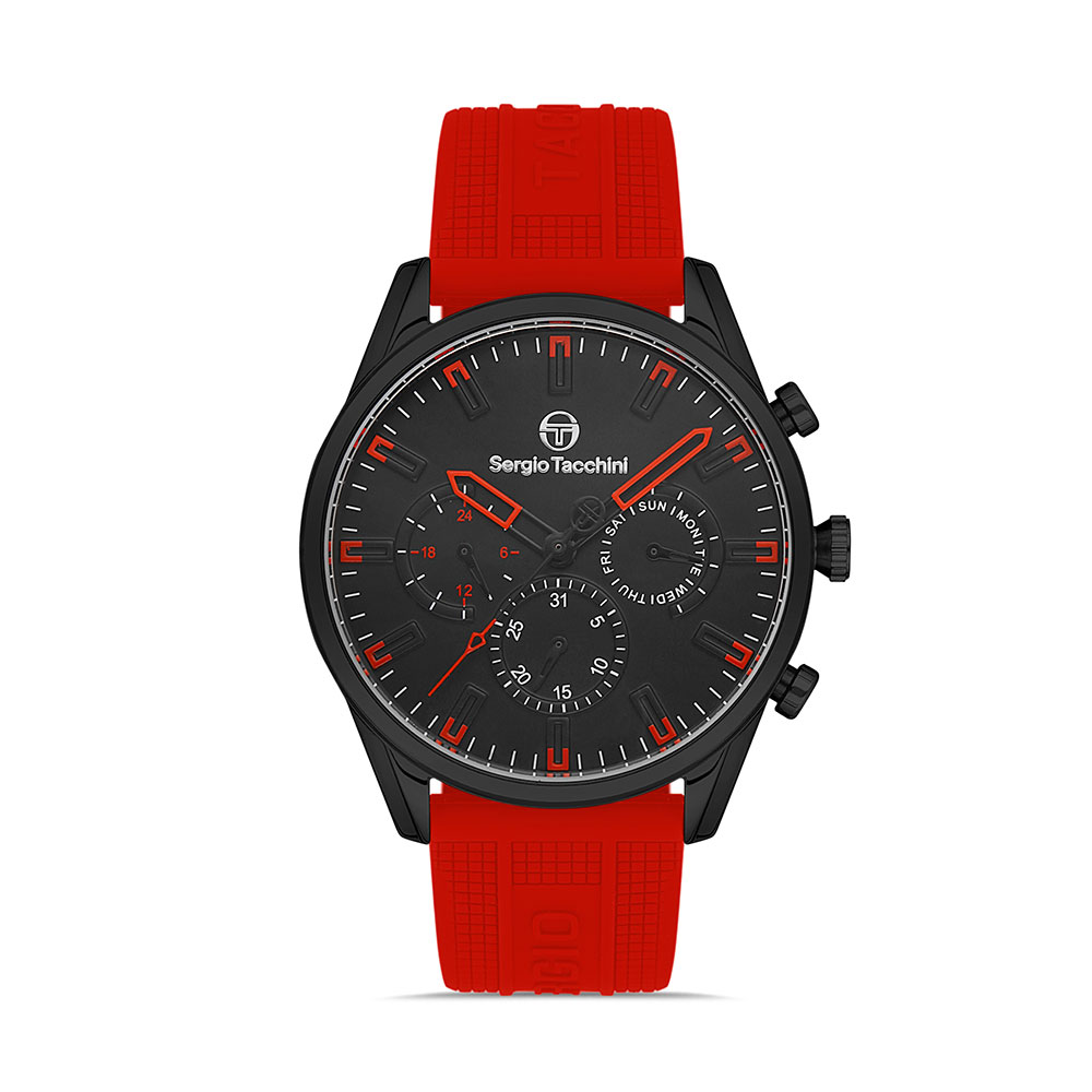 Ceasul Sergio Tacchini Archivio ST.1.10250.6 imbina designul sportiv cu functionalitatea avansata, fiind alegerea ideala pentru barbatii activi si pasionati de stil. Cu un cadran elegant negru si accente rosii, acest model impresioneaza prin detalii rafinate si constructie durabila.