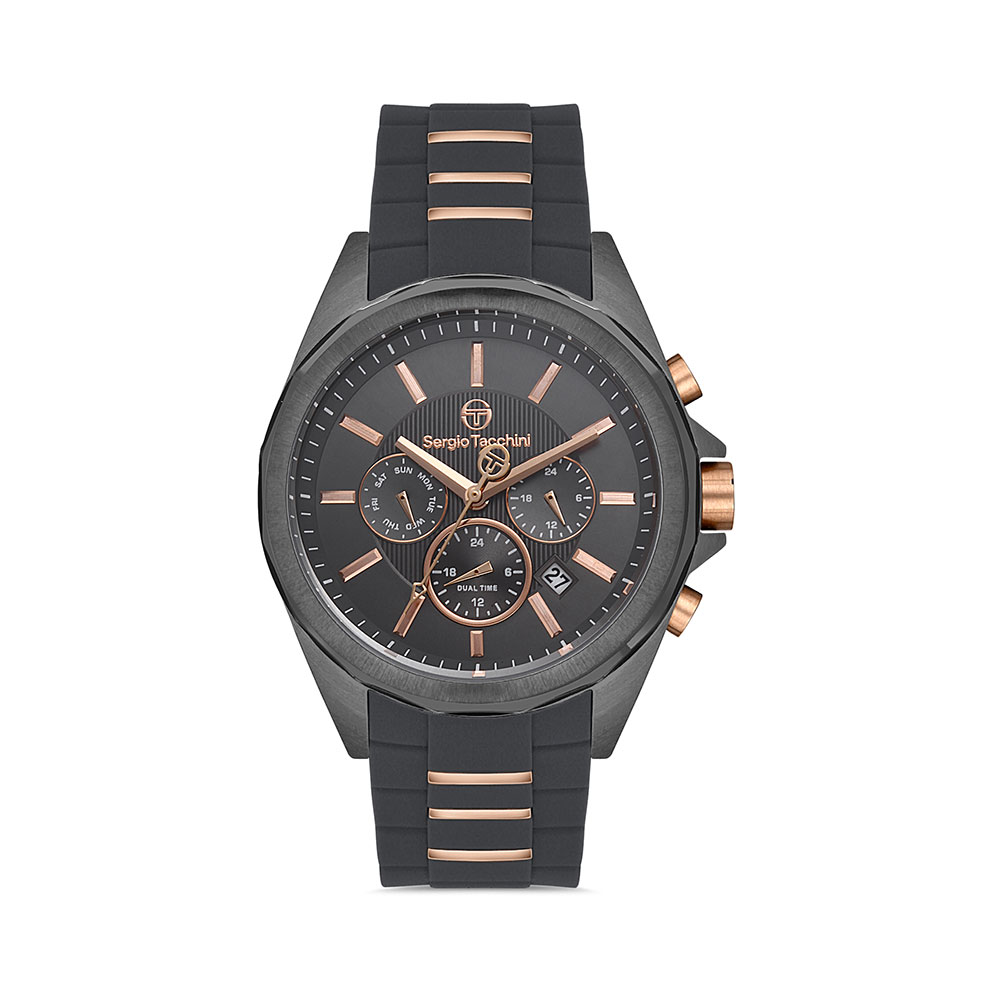 Ceasul Sergio Tacchini Archivio ST.1.10353.3 este alegerea perfecta pentru barbatii care apreciaza un accesoriu elegant, dar si functional. Acest model impresioneaza prin designul sau contemporan, imbinand nuantele sofisticate de antracit cu accente rafinate aurii rose, oferindu-i un aspect modern si masculin.