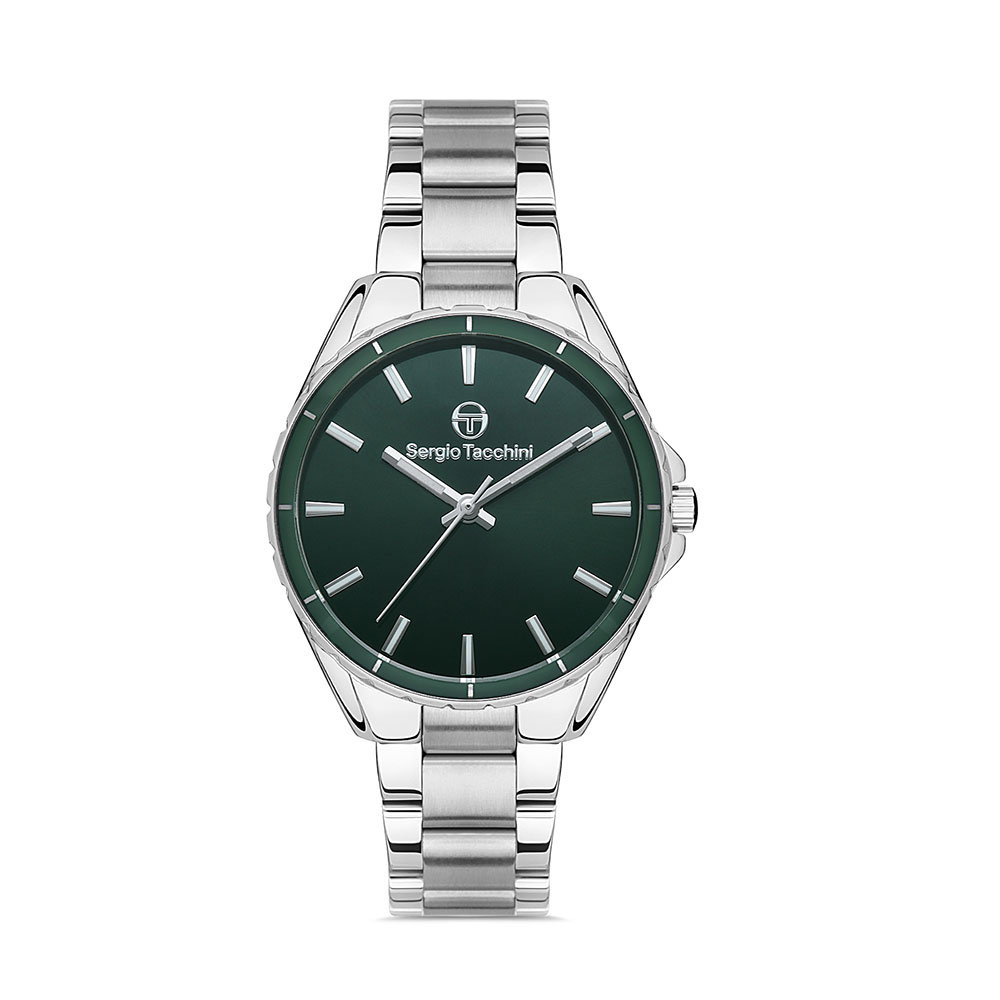 Cu un mecanism japonez de precizie Quartz si abatere de doar ±20 secunde pe luna, ceasul asigura o masurare precisa a timpului. Afisajul analogic pe un cadran verde vibrant adauga o nota de distinctie, in timp ce carcasa rotunda din otel inoxidabil argintiu confera durabilitate si un aspect elegant.