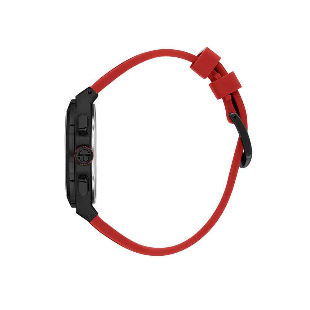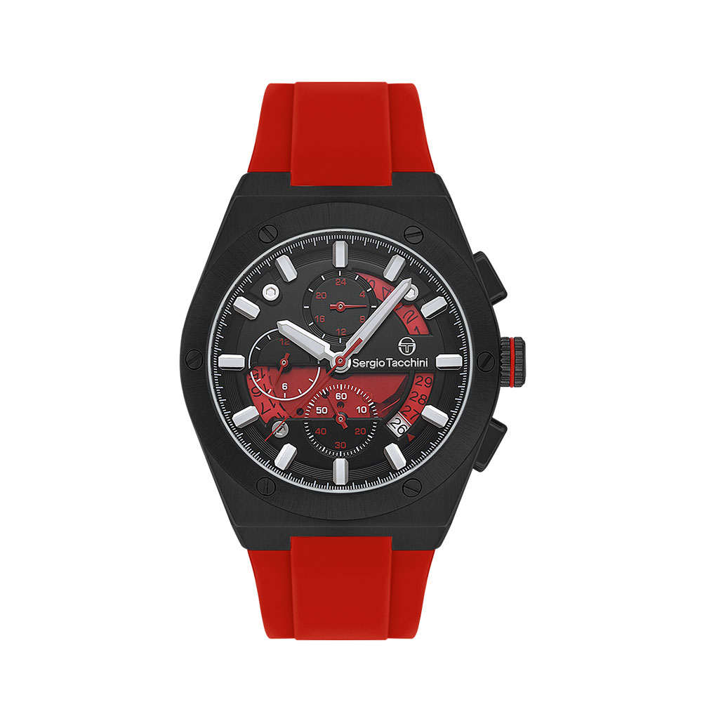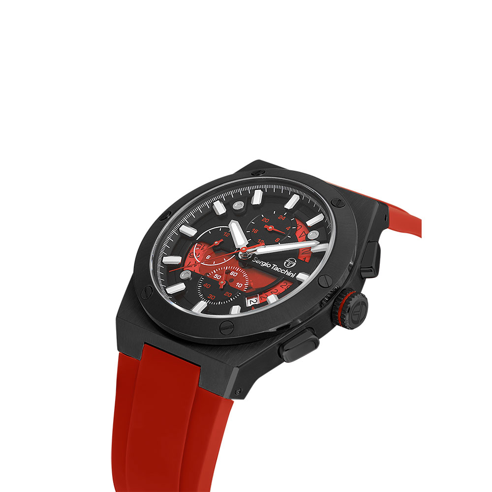 Din colectia Archivio, acest model are un mecanism Quartz de inalta precizie, cu o abatere de doar ±20 de secunde pe luna, provenind din Japonia. Afisajul analogic, combinat cu un cronometru integrat si afisarea datei, ofera functionalitate completa. Carcasa din otel inoxidabil negru, cu un diametru de 44 mm, este complementata perfect de o curea de silicon rosu, creand un contrast vibrant si atractiv.