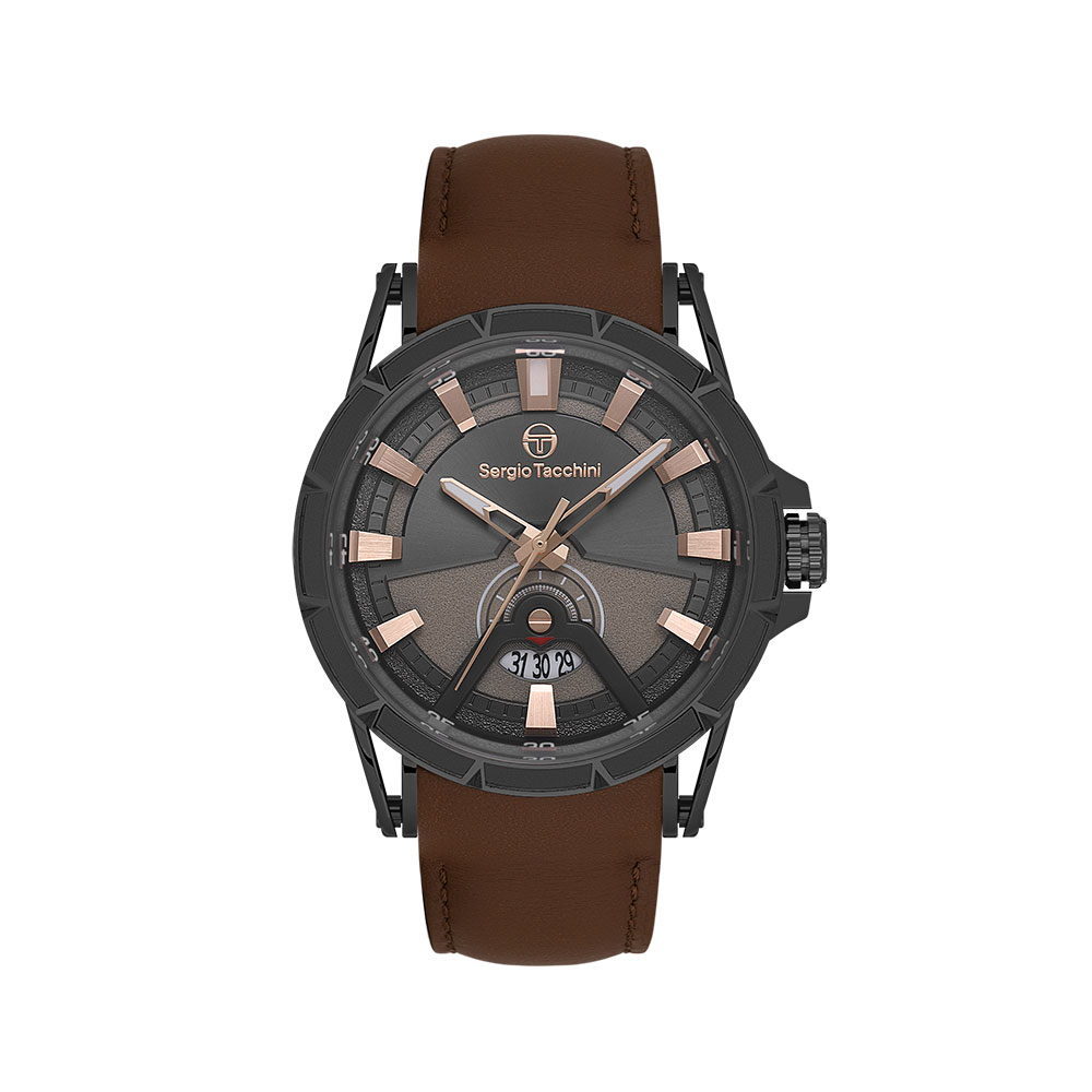 Cureaua de piele maro adauga o nota de eleganta si confort, in timp ce afisajul analogic cu afisare a datei imbunatateste functionalitatea acestui accesoriu deosebit. Ceasul Sergio Tacchini este mai mult decat un instrument de masurare a timpului, este o declaratie de stil.