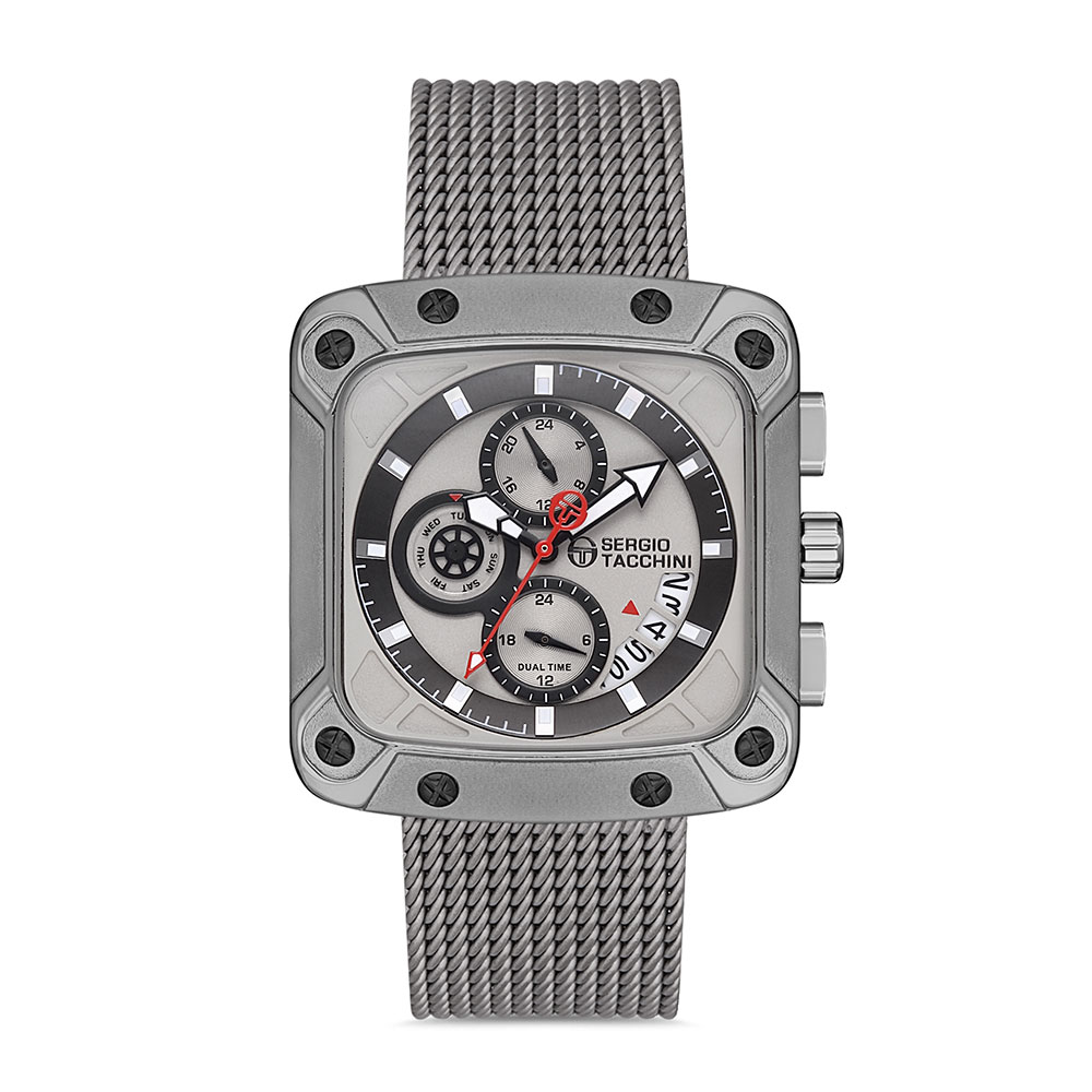 Indicatoare luminoase; bratara tip mesh, cu inchizatoare reglabila, avand lungimea utila 21 cm si latimea de 2.3 cm; afiseaza data si ziua curente si ora in format 12/24; functie dual time, afiseaza doua fuse orare diferite.